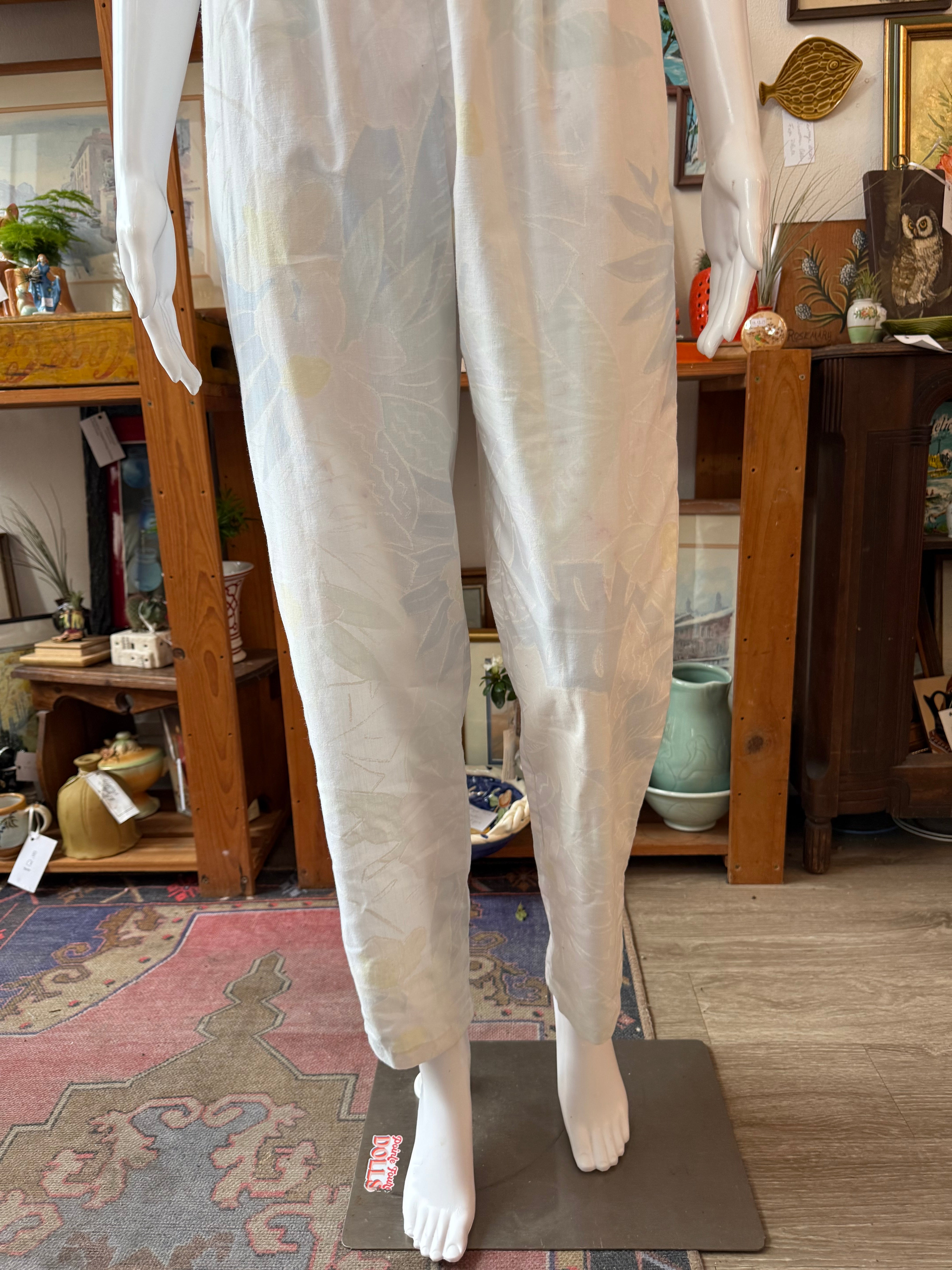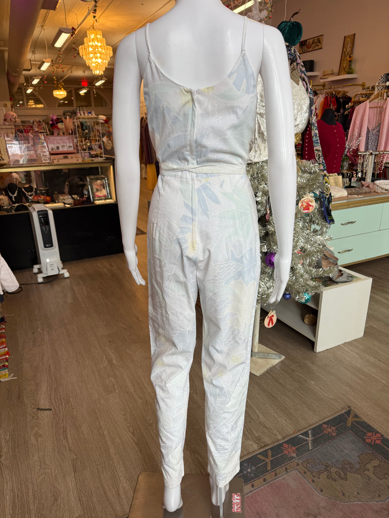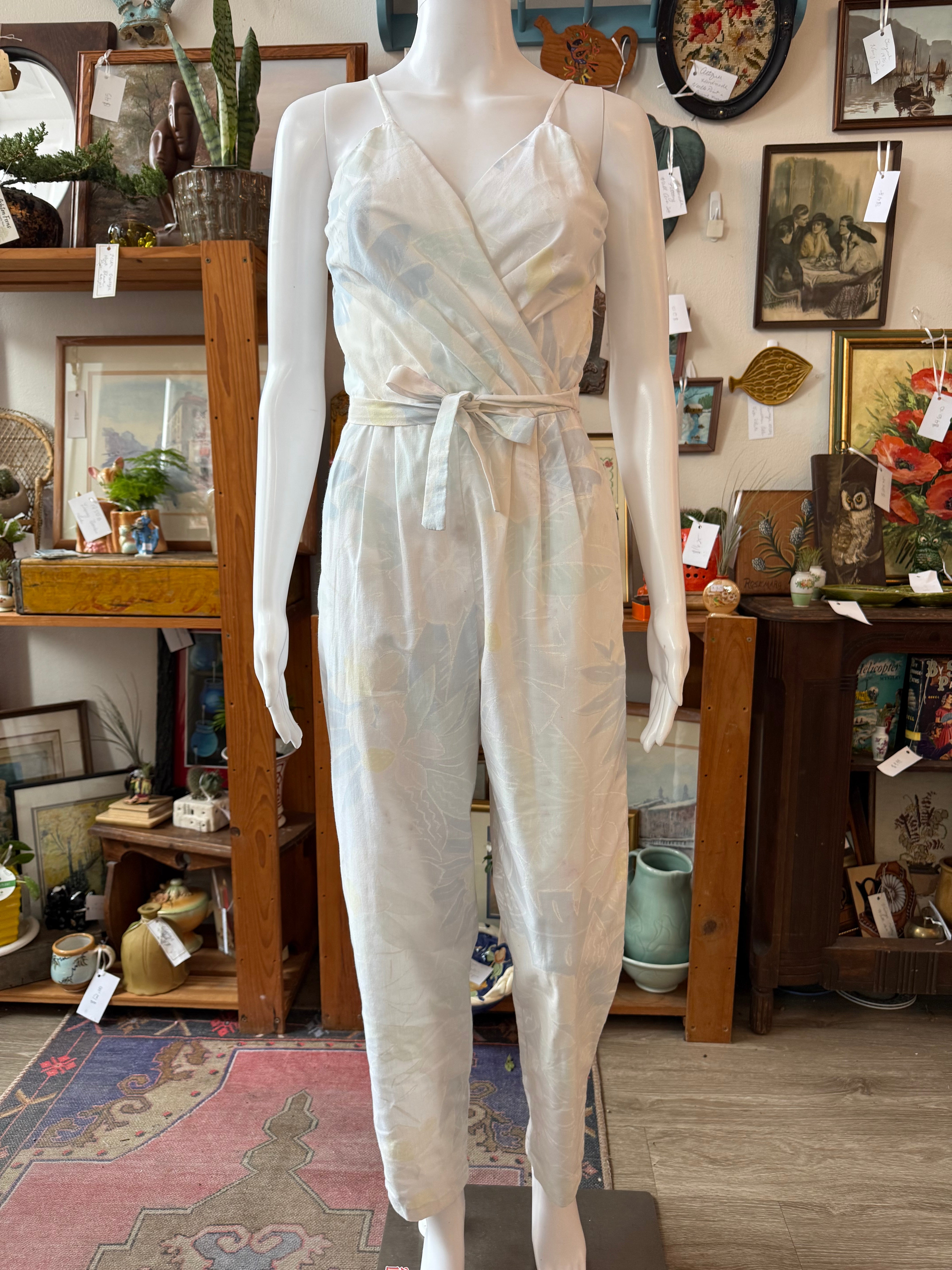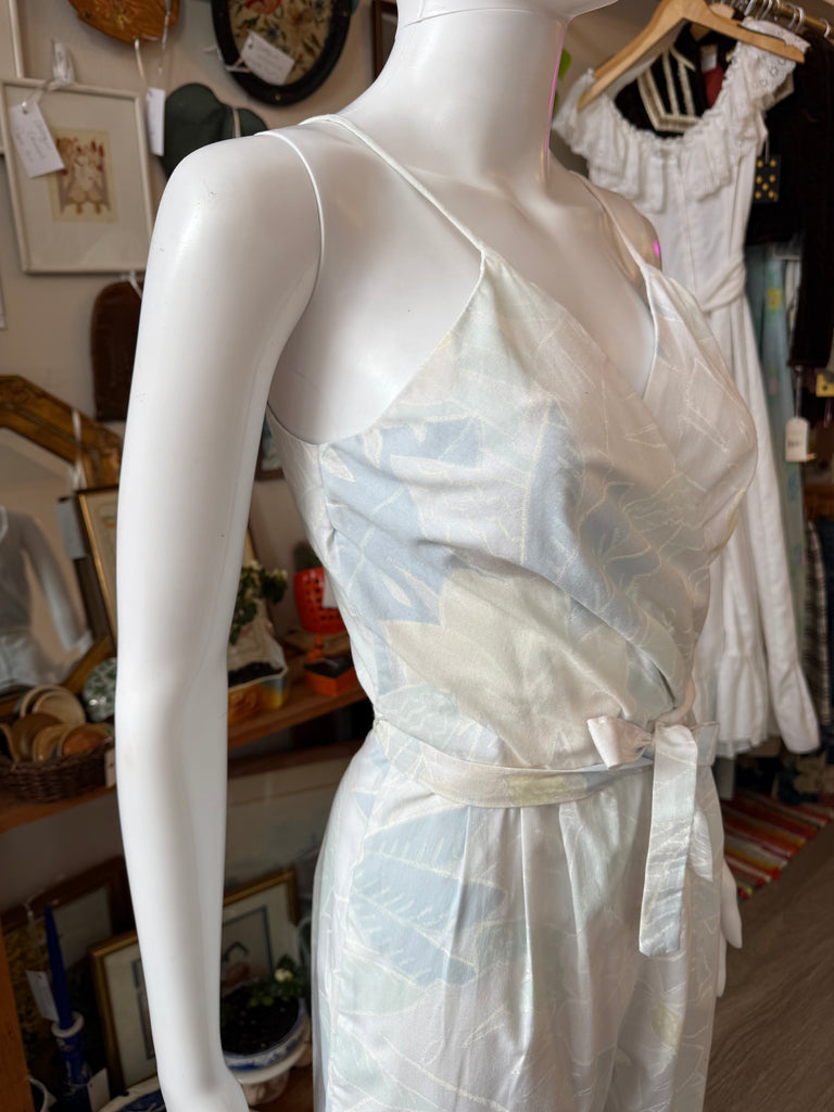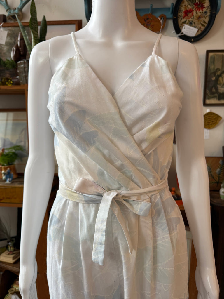 1970s Pastel Floral Wrap-Front Jumpsuit