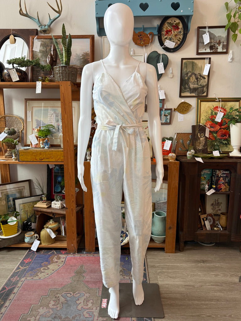 1970s Pastel Floral Wrap-Front Jumpsuit