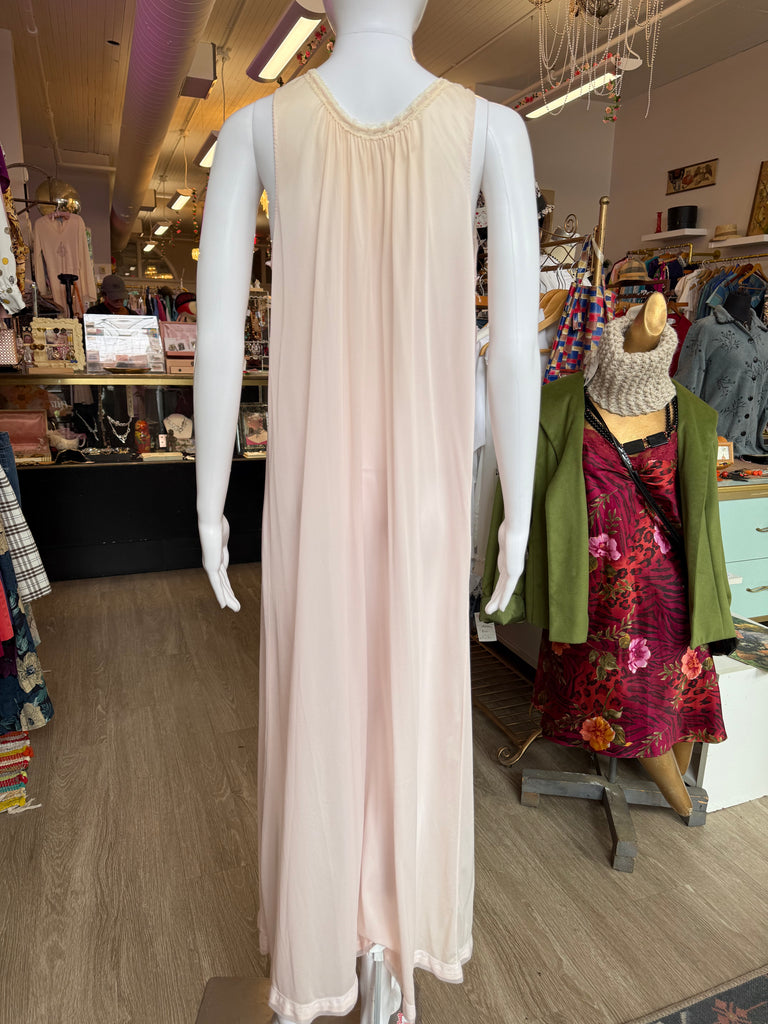 1960s Miss Elaine Baby Pink Maxi Nightgown