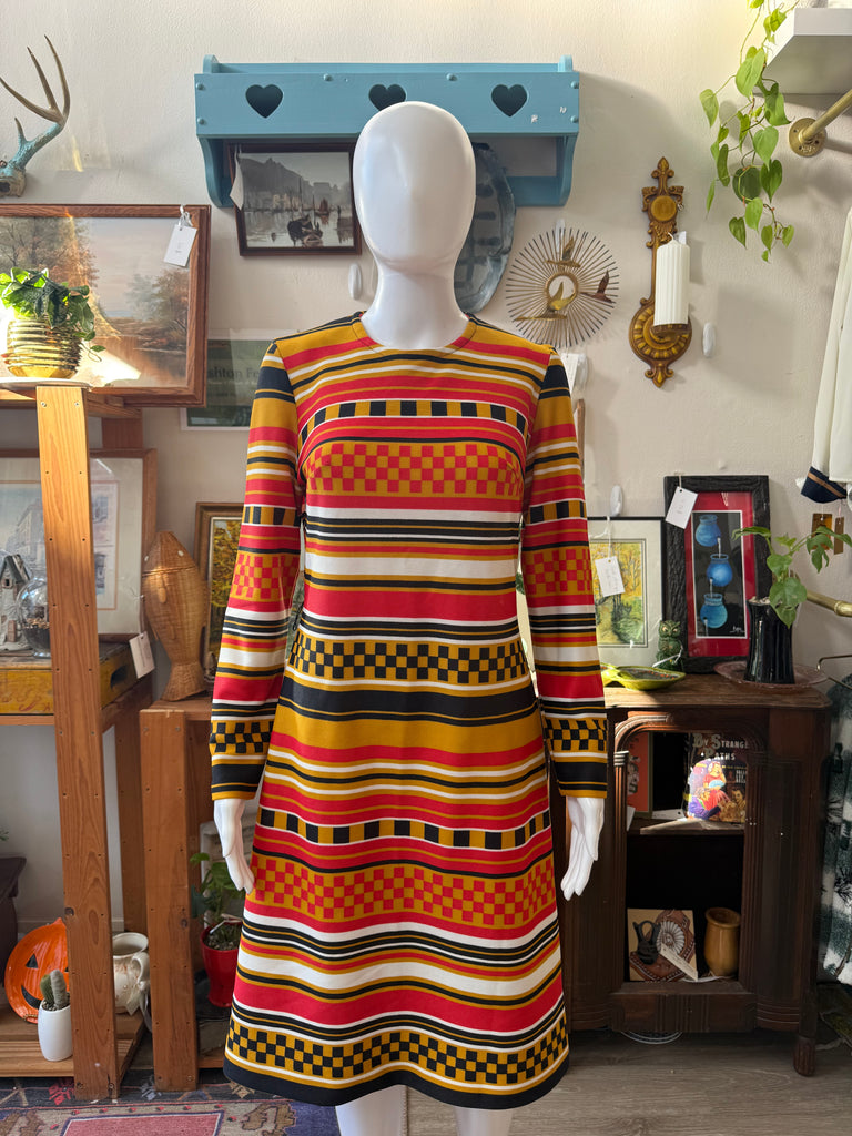 Mod Stripe & Checker Print Dress