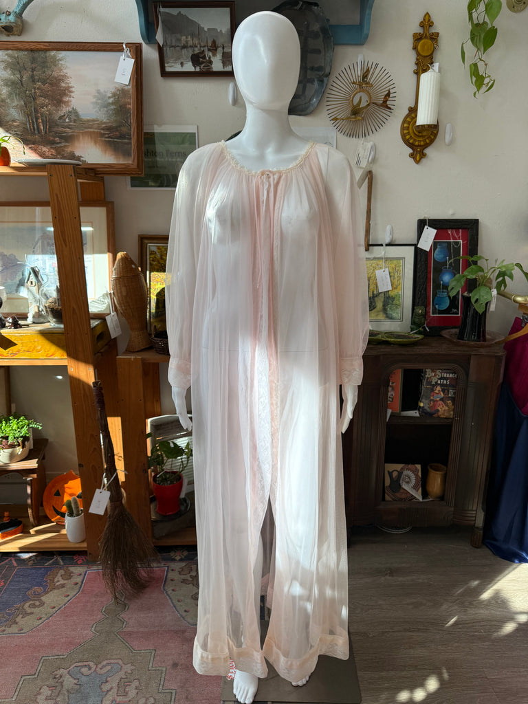 1960s Baby Pink Chiffon Sheer Nightgown Robe