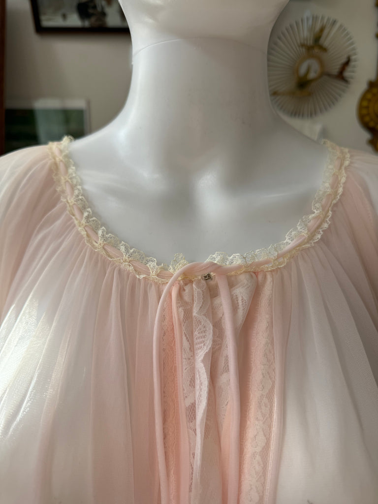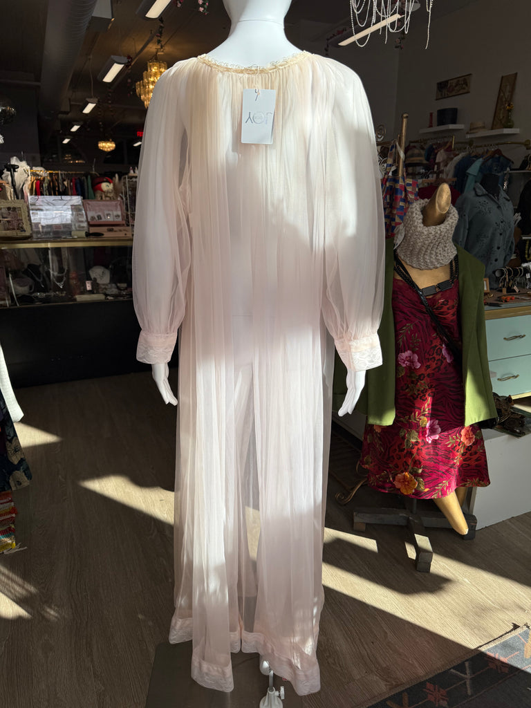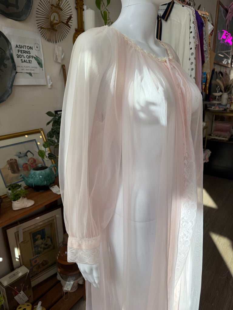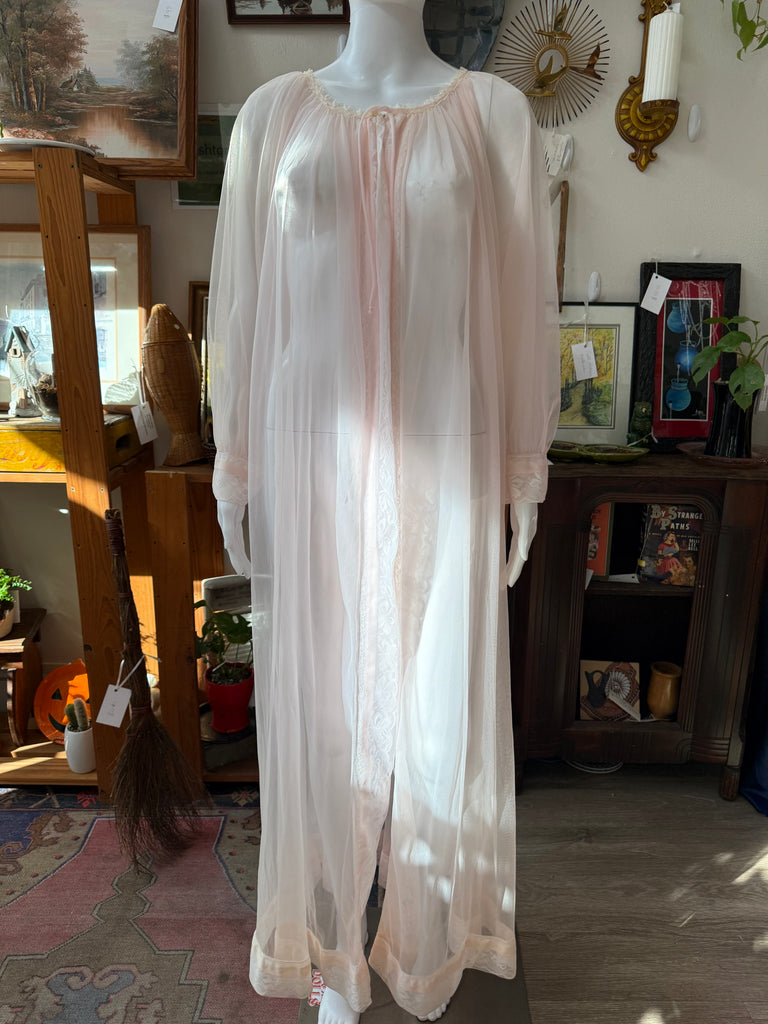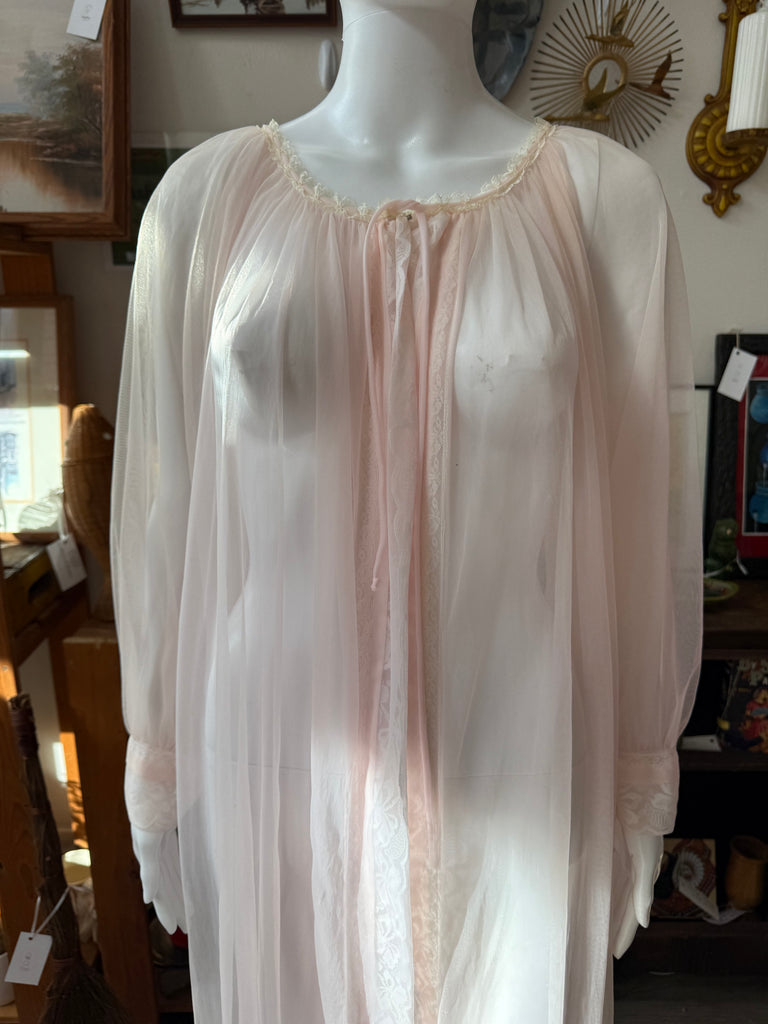 1960s Baby Pink Chiffon Sheer Nightgown Robe