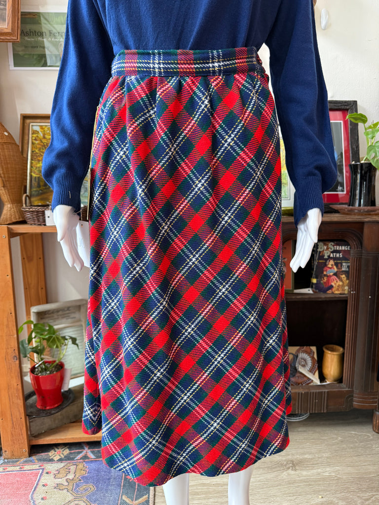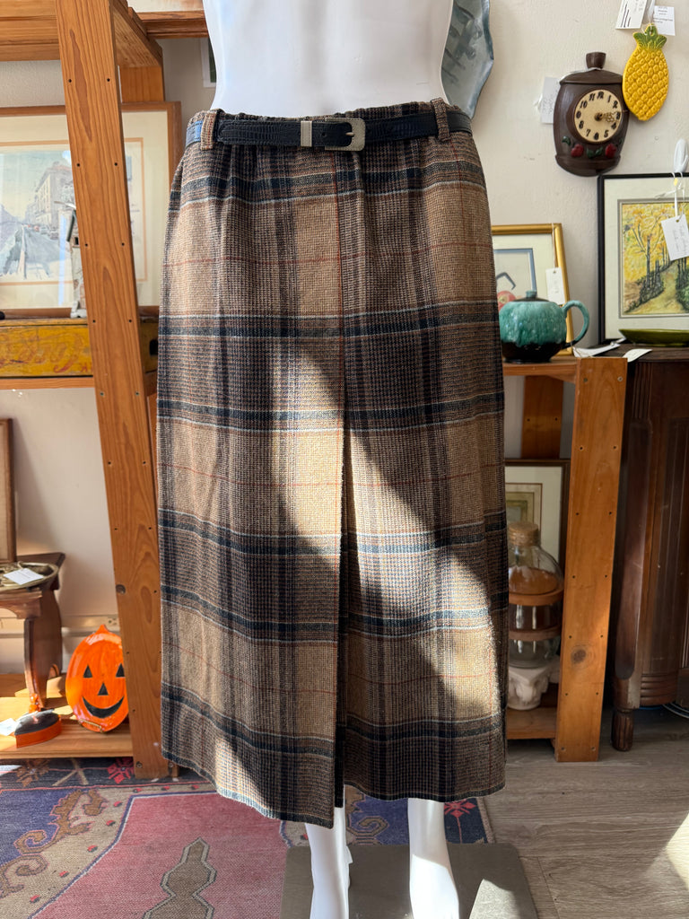 1970s Plaid Wool Midi Skirt w/ Matching Belt