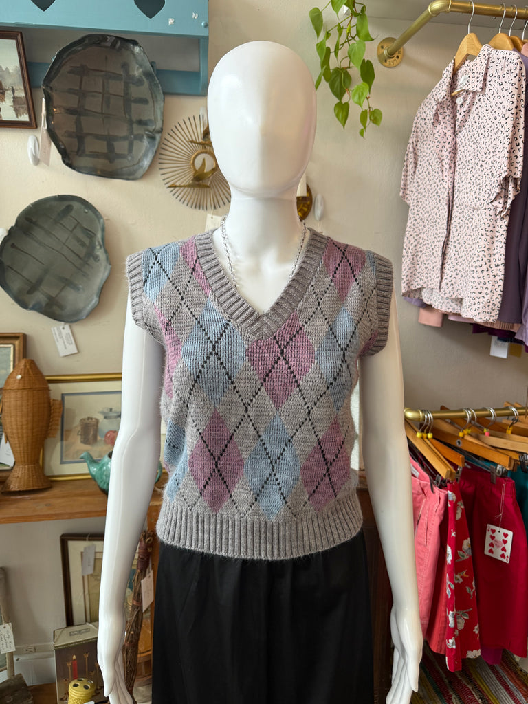Vintage Argyle Cropped Sweater Vest