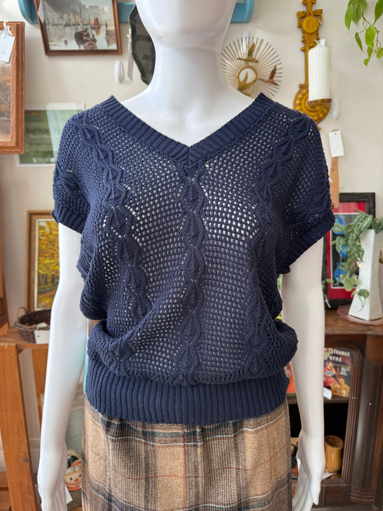 80s Navy Open-Knit Sweater Vest