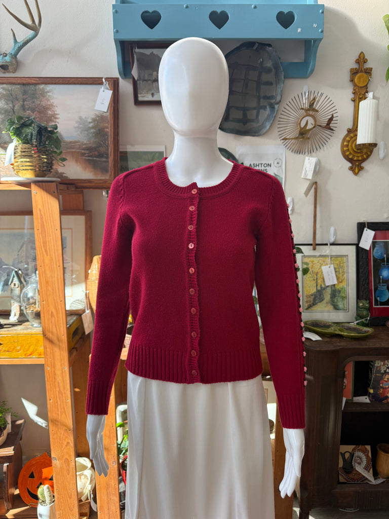 1950s Red Knit Cardigan with Floral Embroidered Sleeves