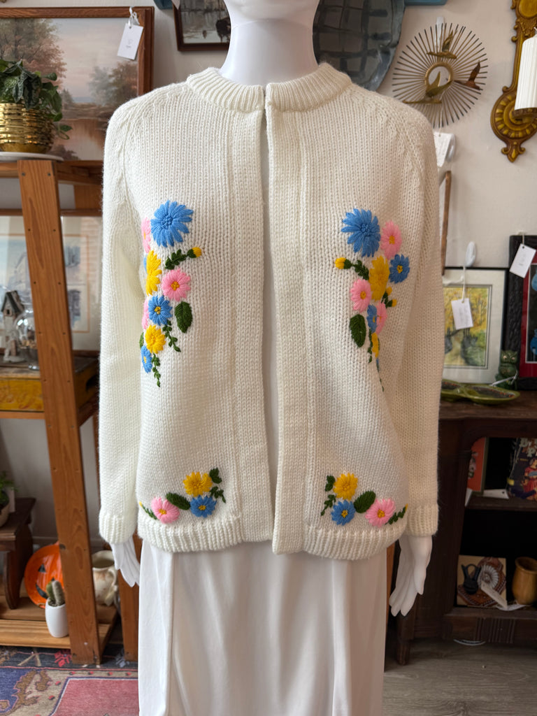1960s Miss Holly Floral Embroidered Cardigan