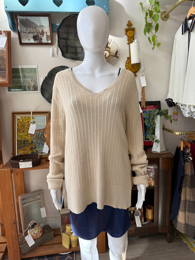 90s Cream V-Neck Sweater