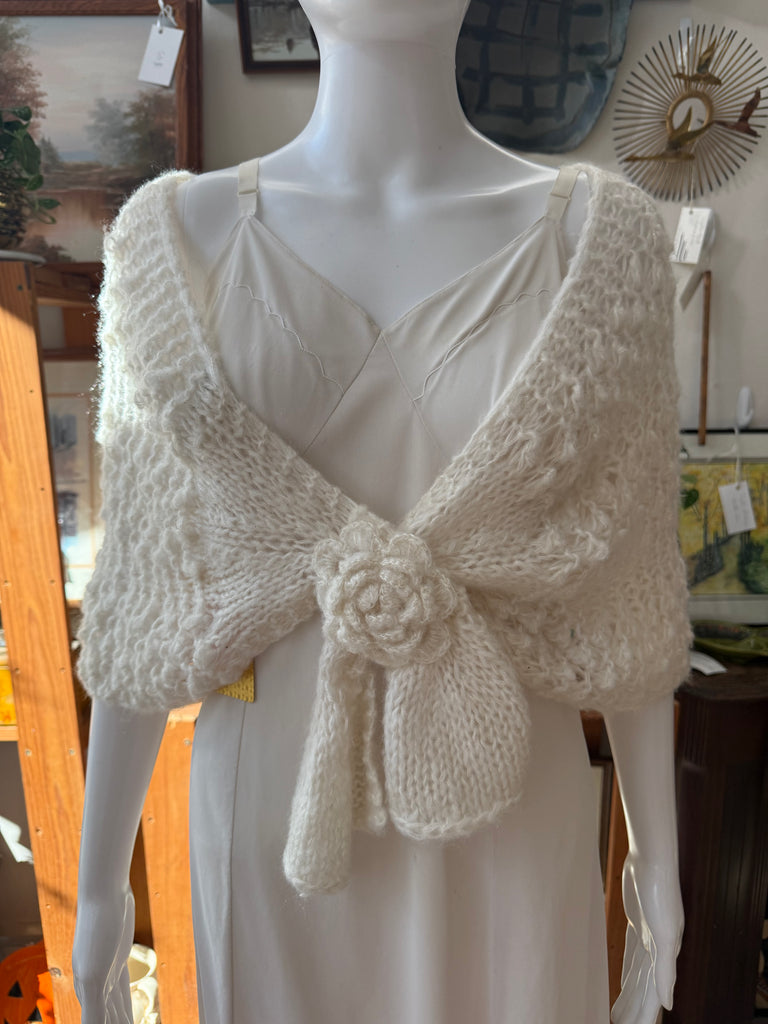 90s Cream Knit Shawl with Flower Tie