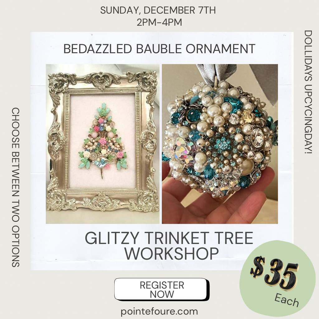 Join us at The Dollhouse on December 7th for a one-of-a-kind workshop: Bedazzled Baubles & Glittery Trinkets! 🎄